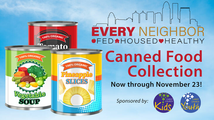You can help every neighbor be fed this Thanksgiving by bringing your offering of 5 canned items to church by November 23!